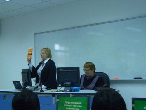 格里金娜从俄语修辞学与言语学的角度,详细地介绍了俄语词汇使用及修辞方式上的重点与难点,指出了几种常见的混用、误用现象。科诺瓦洛娃教授则从正音法的角度,介绍了俄语词汇的发音规律、重音位置特点以及语音和词汇来源的关系等。两位教授还通过现场解题与问答互动,使俄语系的学生参与其中,现场气氛十分融洽、活跃。乌拉尔联邦师范大学的几位教授对广外欧美a片