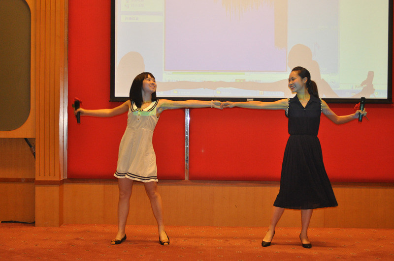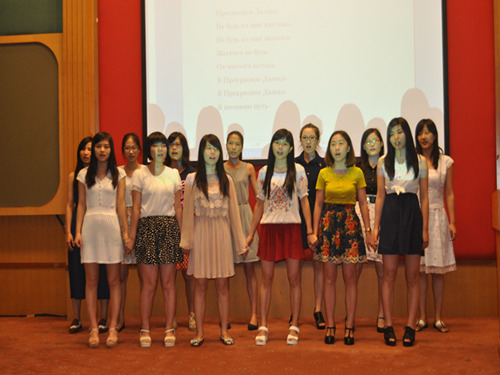 颁奖过后则是各个学校各个年级带来的精彩节目表演:华南师范的学生带来的是契诃夫散文选段朗诵《生活是美好的》和歌曲联唱《美丽的远方》《别走》;而我校方面,表演形式更是多样:普希金诗歌朗诵《假如生活欺骗了你》《我曾经爱过你》,抑扬顿挫,情真意切;歌曲联唱《我和你》、《我爱他》、《莫斯科郊外的晚上》、《红莓花儿开》,这些耳熟能详的歌曲被巧妙串联在一起,在场的观众都不禁为他们轻轻的拍手做和;还有为俄罗斯动画配音,绝妙口技,加上流利的语音语调,让人不禁赞叹。