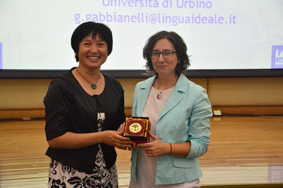 意大利语系主任张海虹女士与主讲教授GloriaGabbianelli