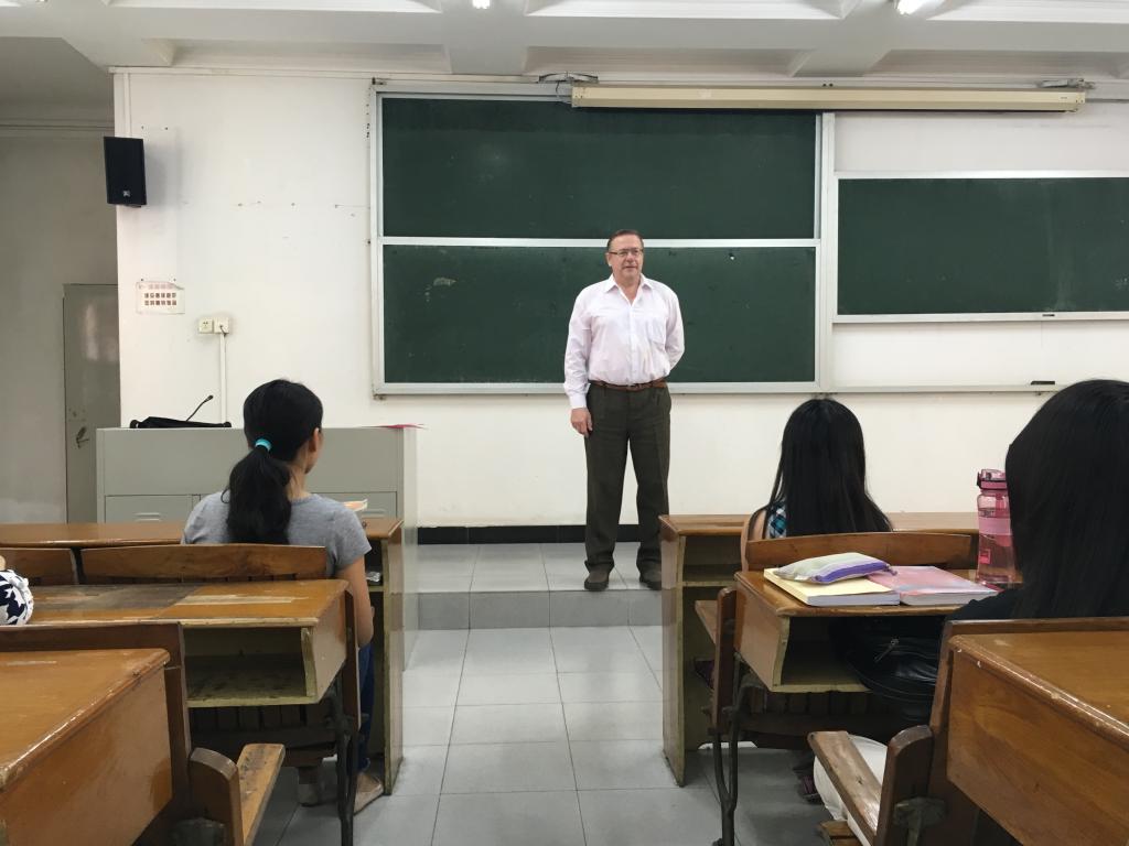 本网讯 11月17日下午,白俄罗斯国立大学理论语言学和斯拉夫语言学系教授鲍里斯·诺尔曼应邀来我校为俄语系学生作了俄罗斯语言与文化的讲座。广外俄语系外籍教授扎里·沙拉符京诺夫和莫斯科大学教授斯维特兰娜·捷尔米娜索娃出席了讲座。