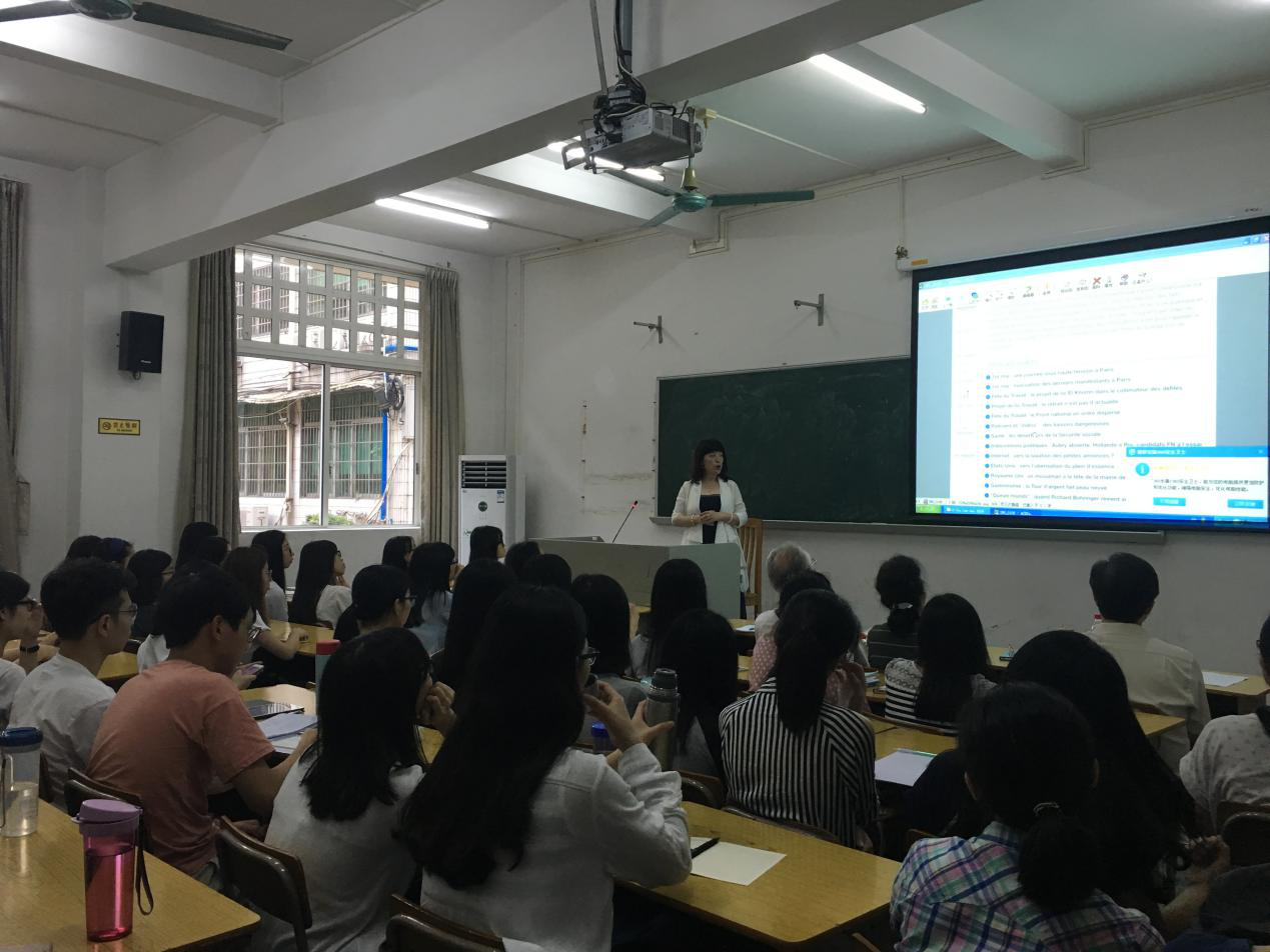 本网讯 继法语MTI系列讲座前三讲获得成功以后,法语系特邀法国电视二台France 2驻京记者站制片人常静来我校讲学。2016年5月09日,常静以《如何利用电视资源学习语言,积累知识,提高翻译能力》为题,为欧美a片