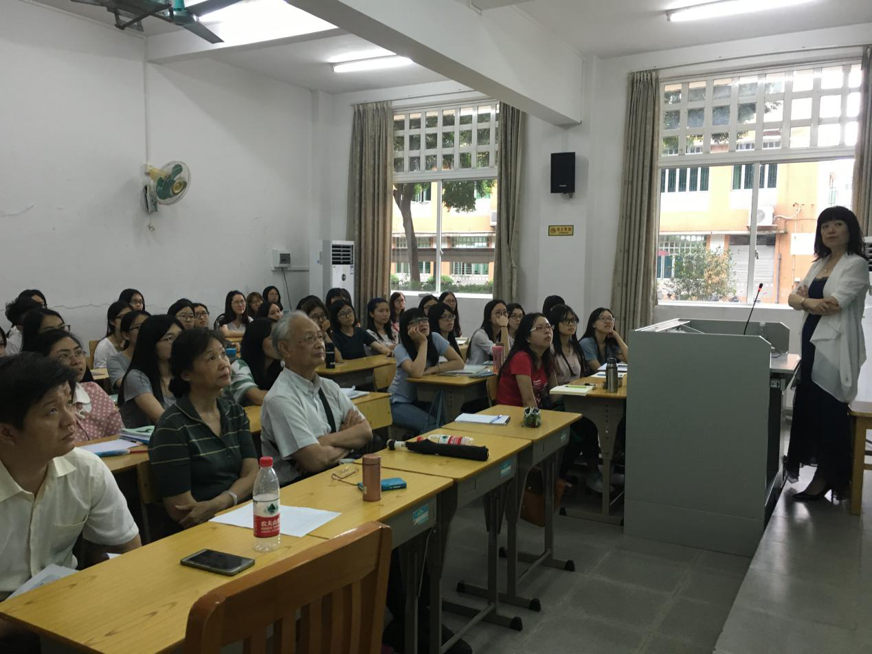 此次讲座由法语系主任叶剑如主持。叶主任简要介绍了常静的求学和工作经历,并向大家介绍了与会的两位重要嘉宾:法语口译课的创始人马炳华教授以及法语MTI的创始人蔡小红教授。