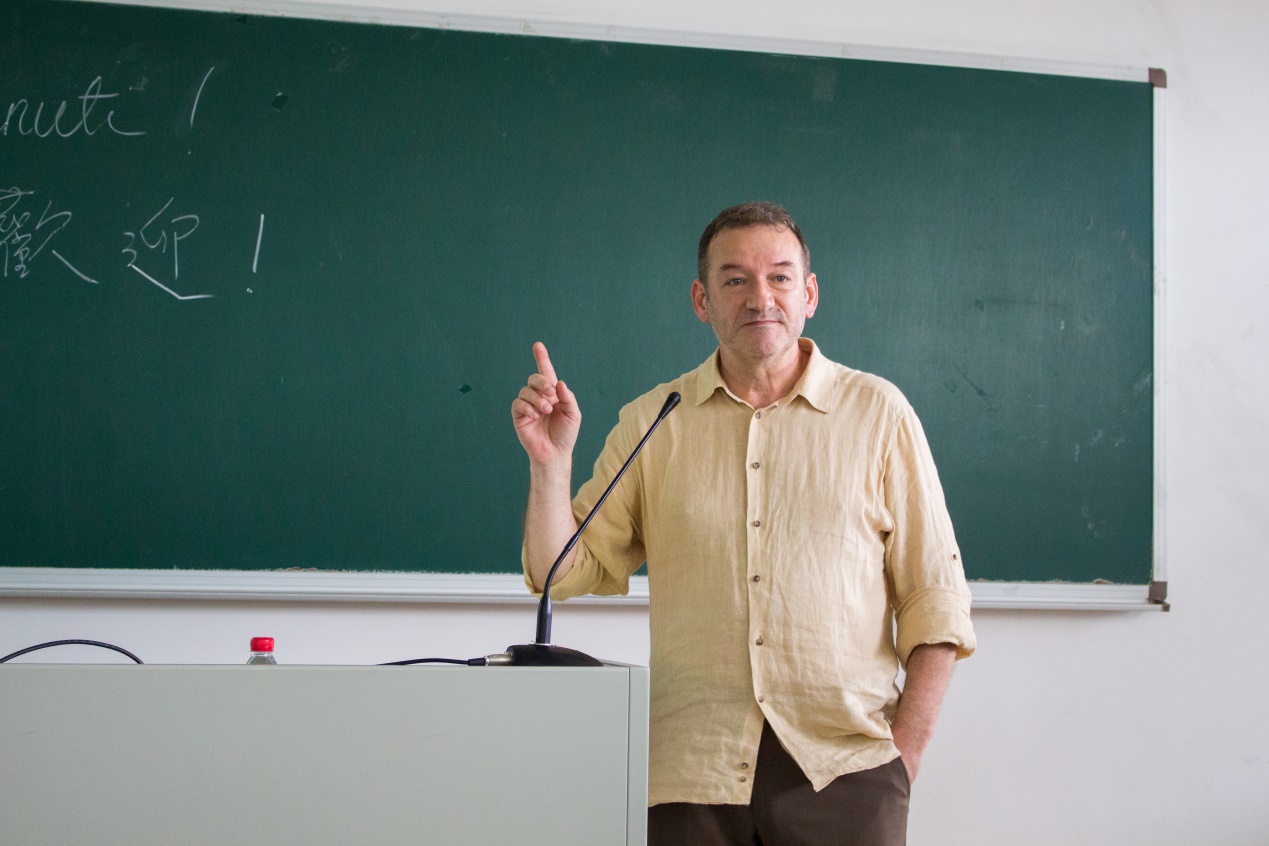 本网讯 10月20日下午,第十六届意大利语言文化周系列活动之专业讲座在我校六教B402教室举行。本次讲座是由Carlo Vannicola和Paola Palma两位教授联合主讲。担任本次活动主持工作的是意大利语系高翔老师。