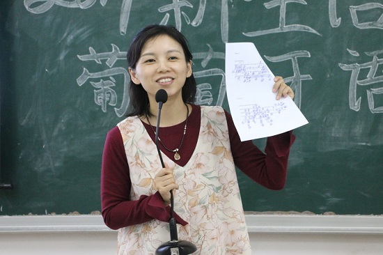 所有选手都展示完毕后,葡萄牙语系讲师陈菁师上台对大家在比赛中的表现进行了点评。在勉励大家重在参与时,她也对大家的认真准备与出色发挥大加赞赏。而后,陈菁老师提出了大家在语音语调方面存在的一些不足,希望大家通过多听多读、勤加练习的方式进行改善。台下的选手们也认真听取老师的意见和建议并做好笔记,丝毫没有赛后懈怠之意。