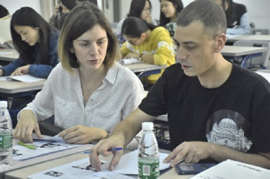所有选手都展示完毕后,俄语系外教副教授石树和外教Джалиль对大家在本次比赛中的表现进行点评。他们指出了选手们在语音语调方面存在的一些小问题,希望大家多读多听,加以改善。同时,他们认为同学们仅通过短短两个多月的学习便能表现得如此精彩,实属不易。若能坚持不懈、继续努力,定能对俄语有更透彻的理解,使用得也更加纯熟。