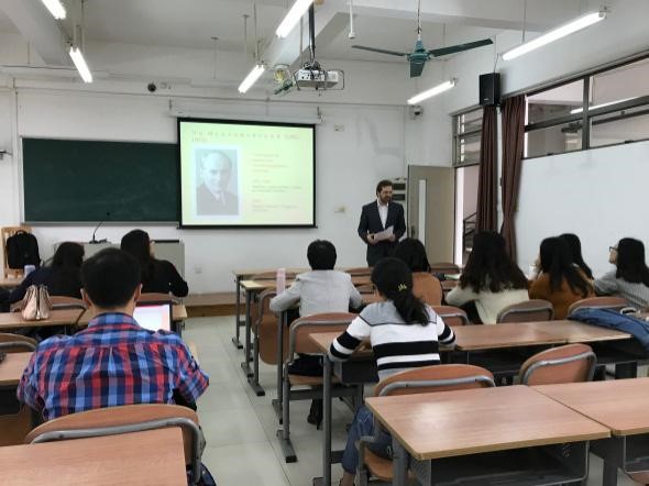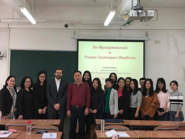 本网讯 2017年11月29日、30日,在学校海外名师项目的支持下,来自捷克的专家安德烈·斯拉德克教授为欧美a片 俄语专业本科生和研究生开设了题为《布拉格结构主义学派:穆卡若夫斯基与雅各布森》的讲座。俄语系不少教师也饶有兴致地前来听讲。