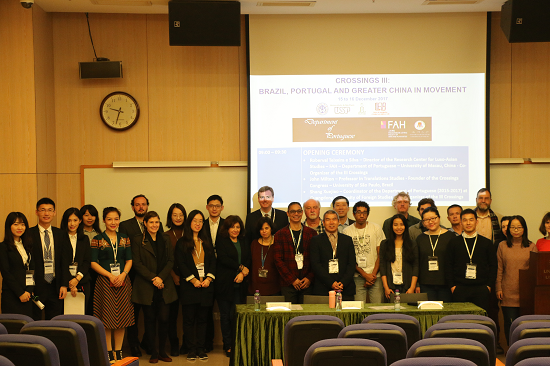 本网讯 12月15日、16日,由澳门大学葡文系主办,广外葡萄牙语系协办的第三届Crossing:巴葡中三国跨文化研讨会在澳门大学举行。来自美国、巴西、澳门、香港、中国大陆的专家及学者出席会议,就葡萄牙语大环境下不同个体、文本、话语、语境、语言的交际互动问题进行了探讨、研究和交流