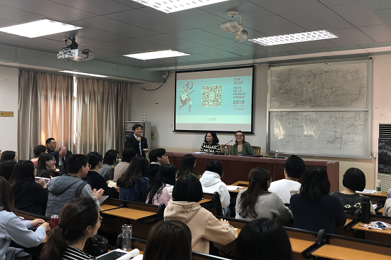 讲座以对话形式展开,作家与法语系副教授王牧老师进行了对话,通过问答的方式,作家得以清晰的表达出她关于文学的认识。讲座主要分为三个部分:首先作家解析对于新小说的理解,而后谈到法国当代作家的一些创作手法,他们各自的特点等,最后结合作家自己的作品,描绘了她自身的创作经验。在问答环节,法语系的学生都很珍惜与作家的这次对话,积极进行提问,就作家的创作和作品的理解进行了提问,与作家交流。