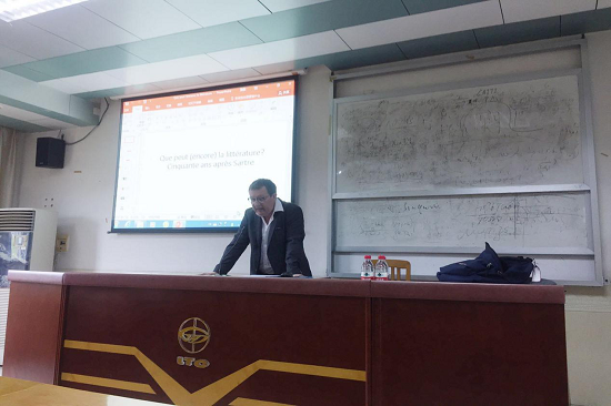 福雷斯特教授首先从自己曾担任联合主编的、在法国乃至世界都颇具影响力的《新法兰西杂志》引入,介绍了其第609刊的主题:文学(夫复)何为。“文学何为”正是1964年在巴黎举行的一场重要研讨会的主题,萨特、波伏娃、豪尔赫·塞穆普伦等众多知名作家均参与了这场辩论。接着,他引领大家回顾了“介入”的概念,重点介绍了萨特、加缪等为代表的法国作家所提出的文学介入概念,并以他们为例分析了文学的意义、作用和可能性,进而探讨文学在当今社会的地位、意义,并发表了自己对这个问题的观点。