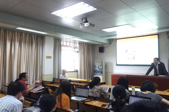 法语系、外文中心师生出席。福雷斯特先生是法国知名作家,发表过多部自传体小说并多次获得法国文学的重要奖项。此次应邀来我校讲学,对文学在当今社会的地位和意义这一问题进行了深入地探讨。