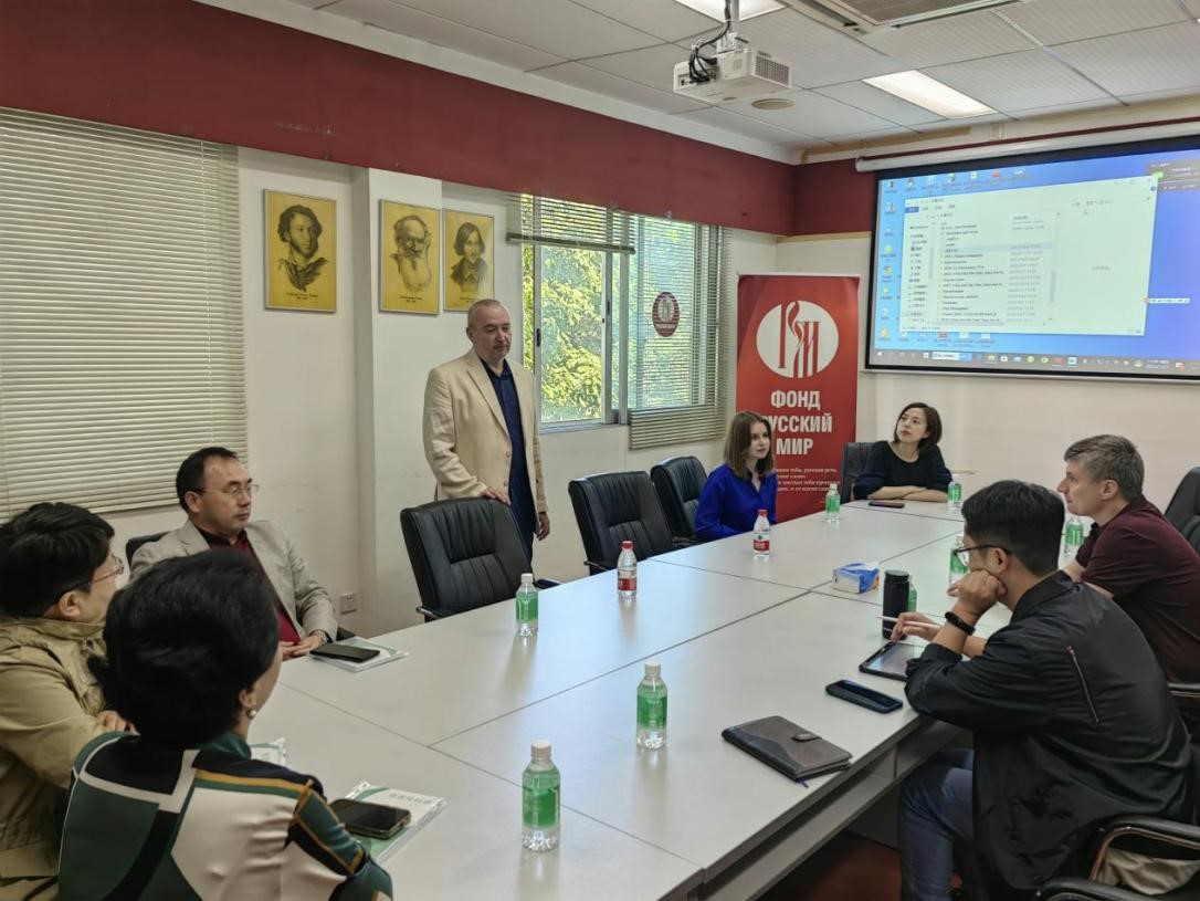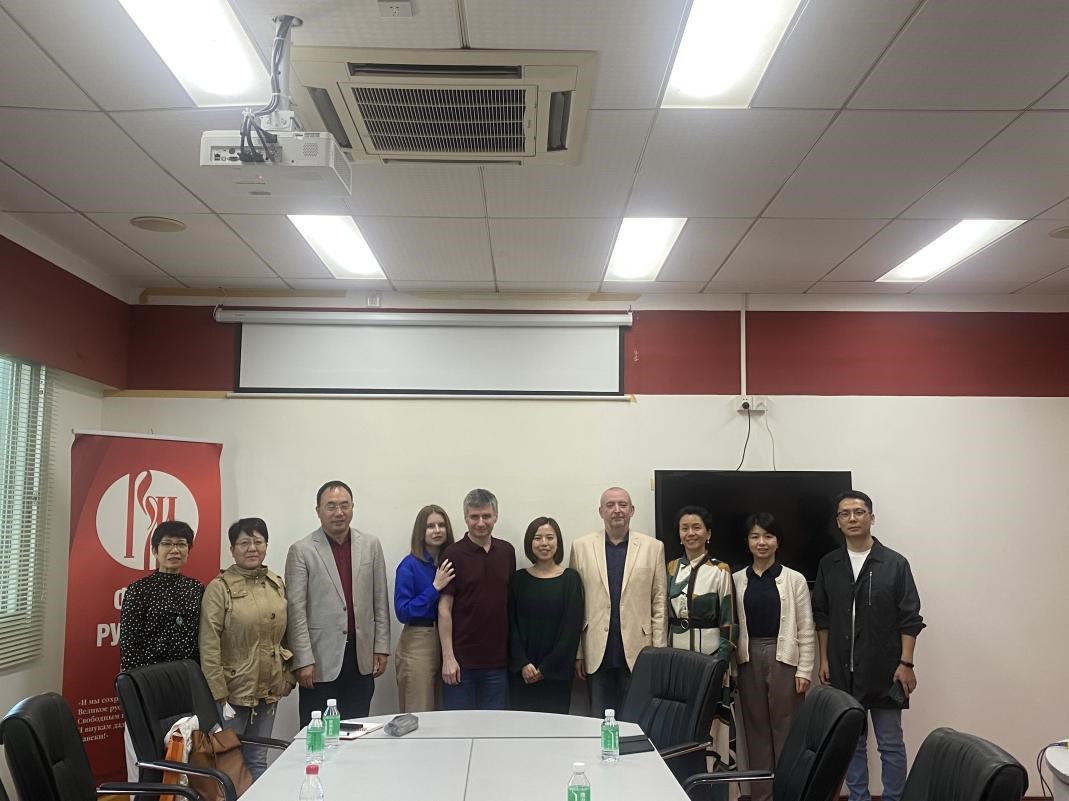 俄语系教师举行了座谈会,他介绍了乌拉尔联邦大学基础语言学和应用语言学学派基本概况、应用语言学与IT、眼动技术、大数据、信息技术方面的关联及研究动态,展示了乌联大在俄语词典编纂方面的科研成果并将部分书籍赠予俄语系,同时对教师在教学和科研方面的问题进行了解答。