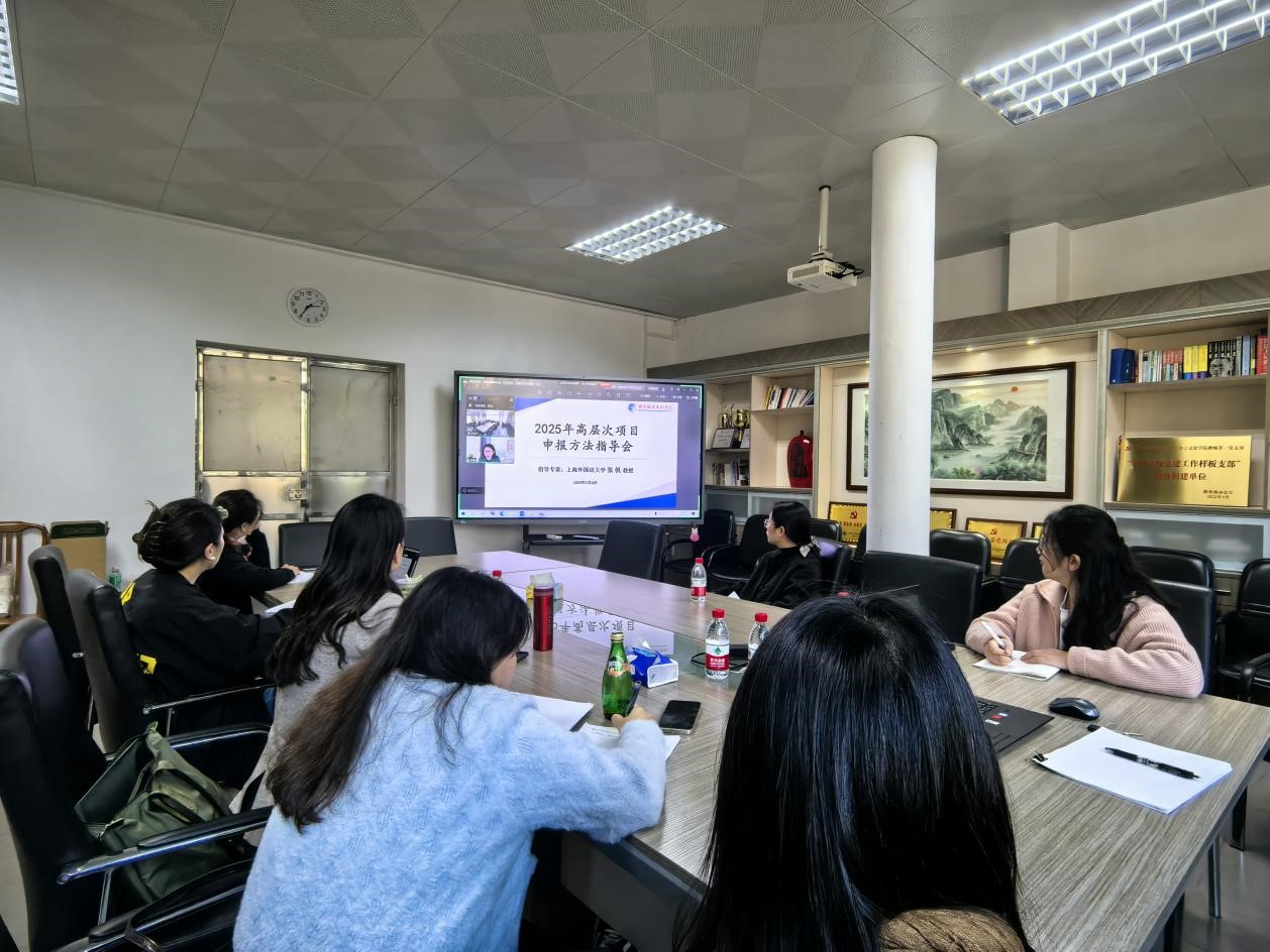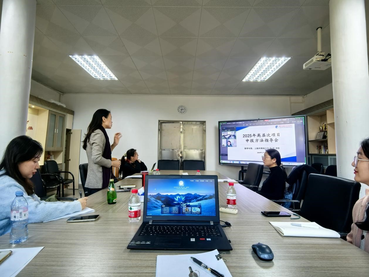 在白云山校区四教207室举办2025年度高层次项目申报方法指导会,上海外国语大学张帆教授应邀针对国家社科项目申报方法进行指导。会议由卢铭君副院长主持。