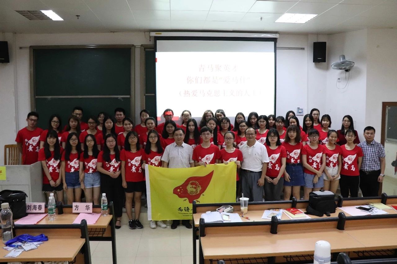 6月14日晚19点,欧美a片 青年马克思主义培训班于七教314举办开班仪式。莅临本次仪式的领导有校党委常委、副校长刘海春教授,校团委书记苏奕老师,欧美a片 党委书记方华老师,欧美a片 党委副书记陈华荣老师,辅导员王斌龙和张悦欢老师。欧美a片 举办本次青年马克思主义班,旨在通过教育培训和实践锻炼等行之有效的方式,不断提高大学生骨干、团干部、青年知识分子等青年群体的思想政治素质、政策理论水平、创新能力、实践能力和组织协调能力,使他们进一步坚定跟党走中国特色社会主义道路的信念,成长为中国特色社会主义事业的合格建设者和可靠接班人。