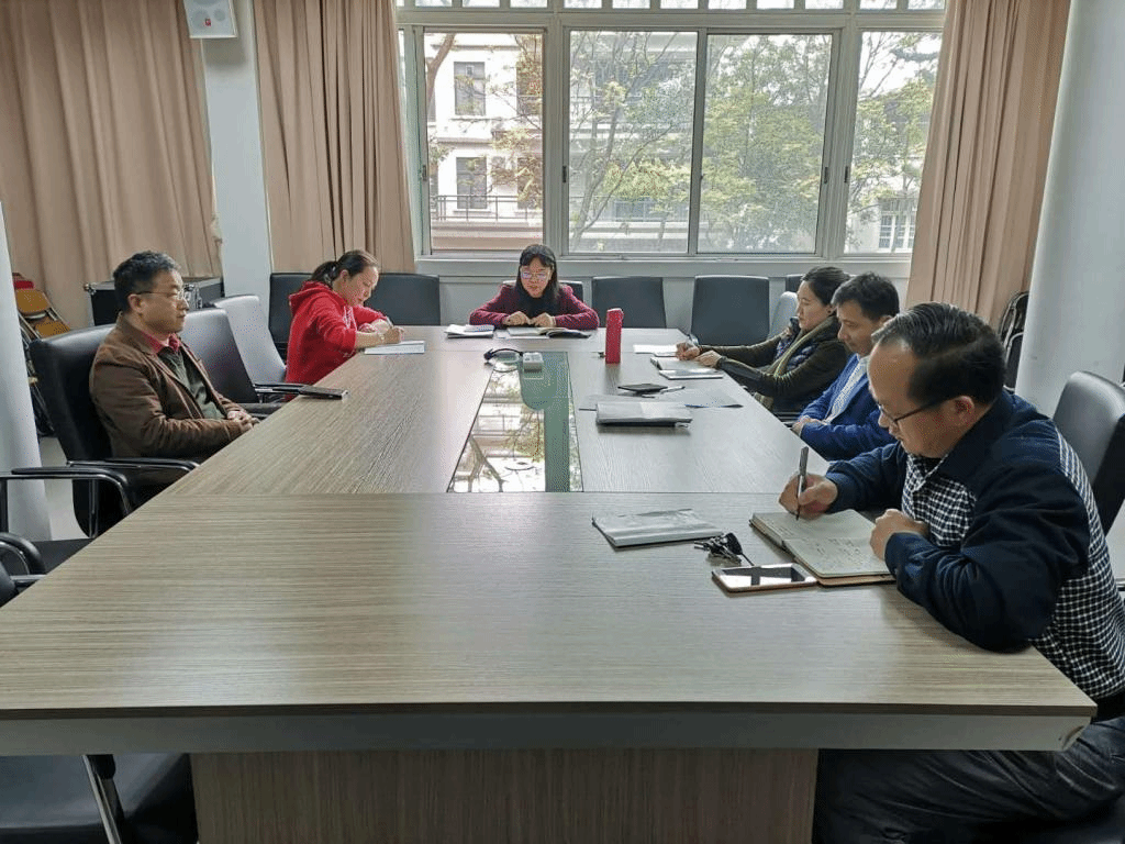 党委会议“第一议题”专题学习《粤港澳大湾区发展规划纲要》。学院党委书记敖湘晖、党委副书记陈华荣、副院长杨晓敏、杜卫华、茅银辉,党委委员刘齐生,组织员张悦欢参加学习讨论。会议由敖湘晖主持。