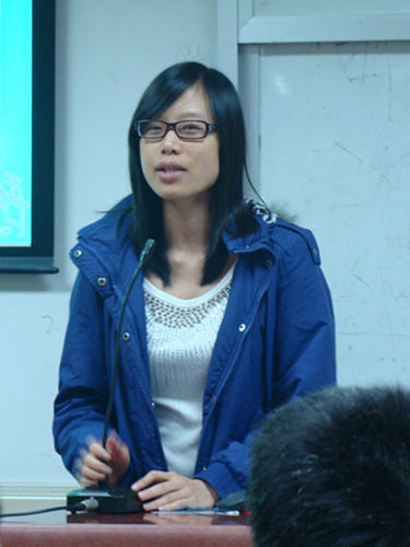 在开始接下来的演讲前,周忆秋首先组织现场同学玩了一个解手链的游戏,并通过这个游戏中涉及的团结协作精神开始了今天的演讲。通过举出六种基本人际关系,她指出团学中最重要的便是双赢。要实现双赢首先要以信任为前提,再就是需要成熟的思想,团学的干部要让部门干事对部门产生认同感。每个部门就像一块拼图,大家取长补短才能共同进步。