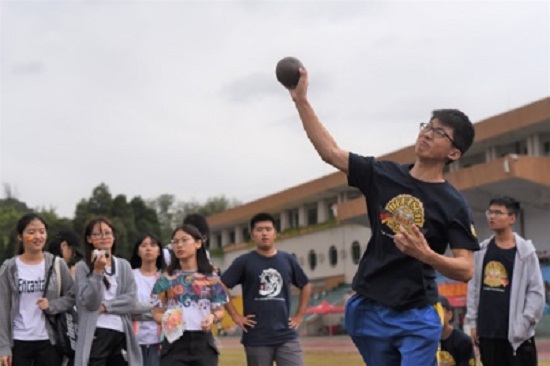 与此同时,男子铅球预决赛开始,运动员们手握沉甸甸的铅球,往空中一挥,铅球在空中留下完美的抛物线。经过几轮比赛的较量,俄语1502谢航辉同学拔得头筹,德语1602李达同学获得第二名,西语1602倪士鸿同学获得第三名。