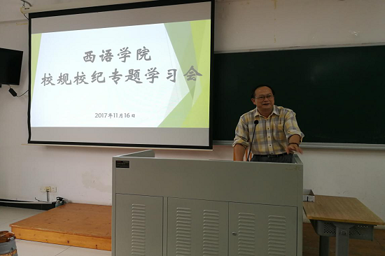 全体2017级新生做好这次测试工作,11月16日下午,学院党委陈华荣副书记、新生辅导员张悦欢老师在第六教学楼为新生开展校规校纪专题学习会。