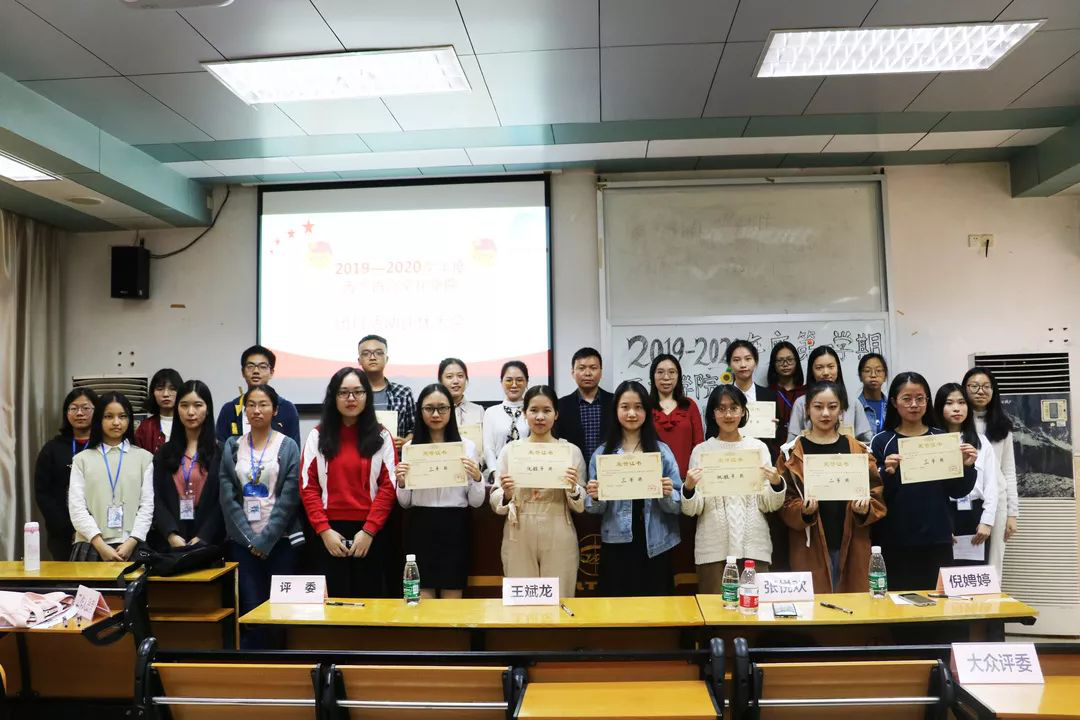 2019—2020上半学年“青春心向党,建功新时代”团日评优大会于四教424顺利举行。进入决赛的10个基层团支部采用了朗诵、情景剧、双语合唱等多种形式,展示了同学们深入了解党团知识与习近平新时代中国特色社会主义思想,投身公益志愿服务,并积极与时政热点、各自专业相结合的精彩团日活动,充分展现了当代团员的风采。评委由欧美a片