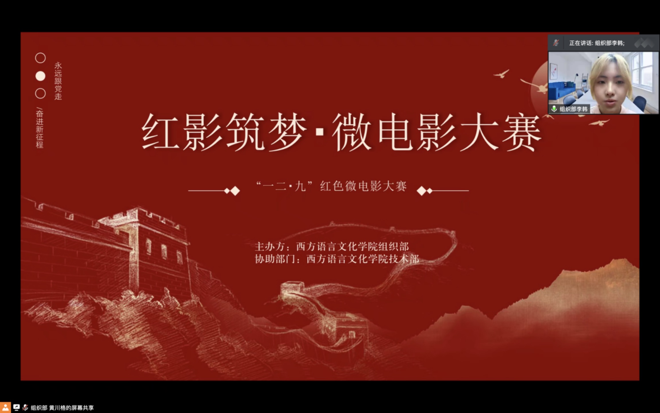 举办了以“红影筑梦”为主题的红色微电影大赛。