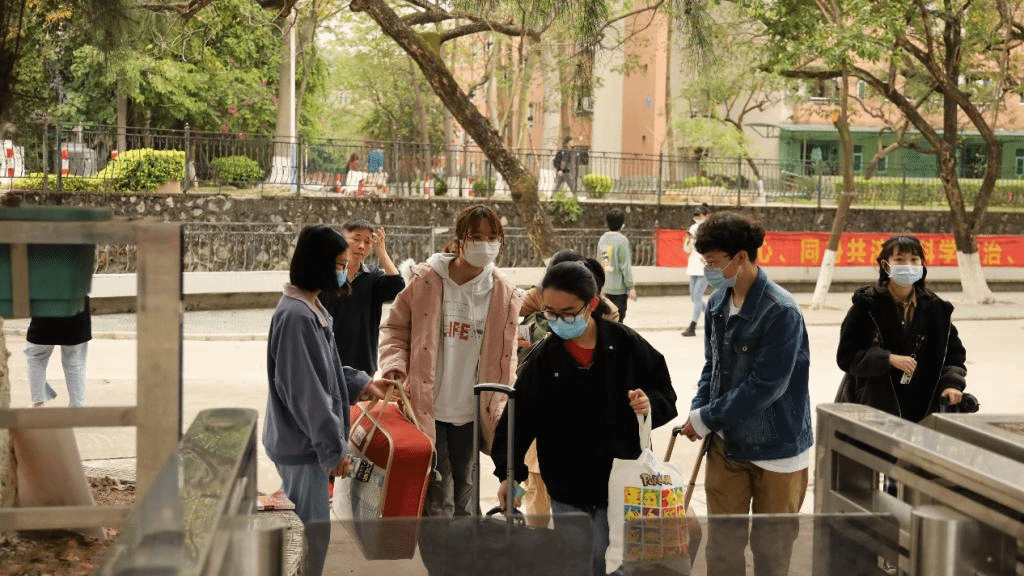 的志愿者们却仍不失为同学们服务的热情,积极响应学校号召,带好口罩,做好防护,助力同学们返校。