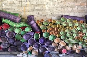 结束参观鸡舍后,队伍来到了旺沙堡村竹笠加工基地。旺沙堡村脱贫特色“一鸡一果一笠”中的“一笠”指的就是竹笠编织加工。竹编工艺技术成本较低,无需消耗很多体力,对于农村中劳动能力较弱的贫困户,或者尚未达到外出务工年龄的孩子来说,是一个不错的增加经济收入的方式。经过多方努力,村里成立了加工厂,工厂负责分发原材料以及回收农户编织的半成品,还多次组织技能培训班,通过培训学习提高农户编织熟练度。