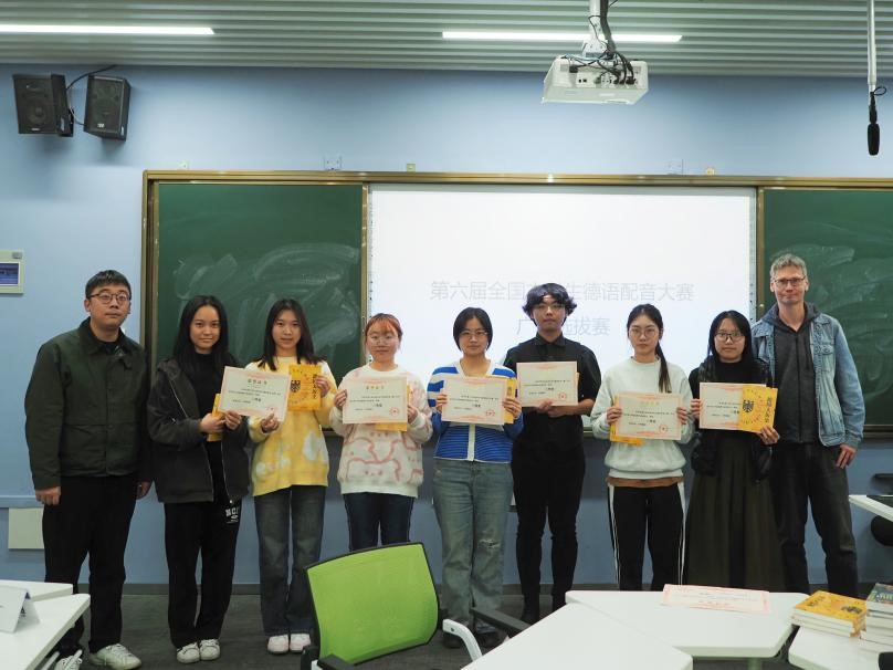 本网讯 3月7日下午,第六届全国本科生德语配音大赛广外选拔赛于一教南楼207多功能教室顺利举办。共计有十二支队伍报名参与并展开角逐,德语系主任吴晓钢、德语系外教Ingo出席并担任评委。