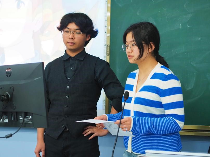 每支队伍选取的配音片段不尽相同,其中既有语调严肃、措辞讲究的科教节目,也有情节新颖、感情充沛的经典影视,可谓精彩纷呈。在配音表演过程中,来自不同队伍的同学们共同用默契的配合、娴熟的对话、生动的表演,引领着台下的观众仿佛置身于各式各样的实景,奉献了一场绝妙的视听盛宴。最终,德语2301班练丰仪、李嘉喻获得本次选拔赛一等奖,并将代表欧美a片