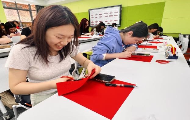 活动中,蔡同学表示:“剪纸是中国的传统文化,它通过用剪刀在纸上剪出各种形状和图案,表达了人们对生活的热爱和对美的追求。这次活动不仅使我感受到传统艺术之美,更使我在专注创作美好事物时感到无比的满足和快乐,这种满足感和快乐感让我更加热爱生活”。吕同学表示:“这次活动加深了我对中华剪纸的“美”的体验。我们在老师的指导下剪纸并拓印,不同的同学有不同的灵感和审美,因此创造出来的作品也独一无二。我发现原来剪纸这个民艺还是被很多人所喜爱的,希望以后也能被更多人热爱,更多的青年主动去继承和弘扬中华优秀传统文化。”