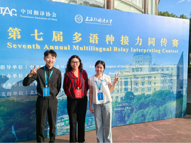 参赛。凭借过硬的专业素养和出色的临场发挥,矫好同学勇夺中法同传组别全国一等奖,张安妮同学获得优秀奖。
