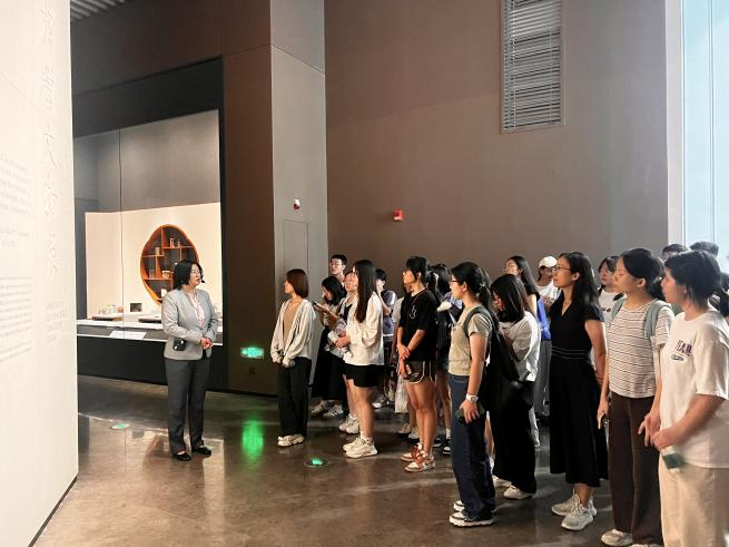 在博物院讲解员的带领下,师生们一起参观了“泛彼无垠——广州艺术博物院藏历代书法精品展”,本次展览以“唐人写经”“明代书法”“清代书法”“近现代书法”四个单元呈现,展出作品创作年代跨度长,形式多样,篆、隶、草、楷、行五体俱全,文辞内容丰富,涉及佛教经典、诗文词赋、文房楹联、往来书信、书评画论等内容。历代众多名家书法佳作齐聚一堂,展览作品风格各异,从豪迈古韵到自然出新,无不展现了中国书法艺术的博大精深和独特魅力,师生们在参观中也更加坚定了文化自信。