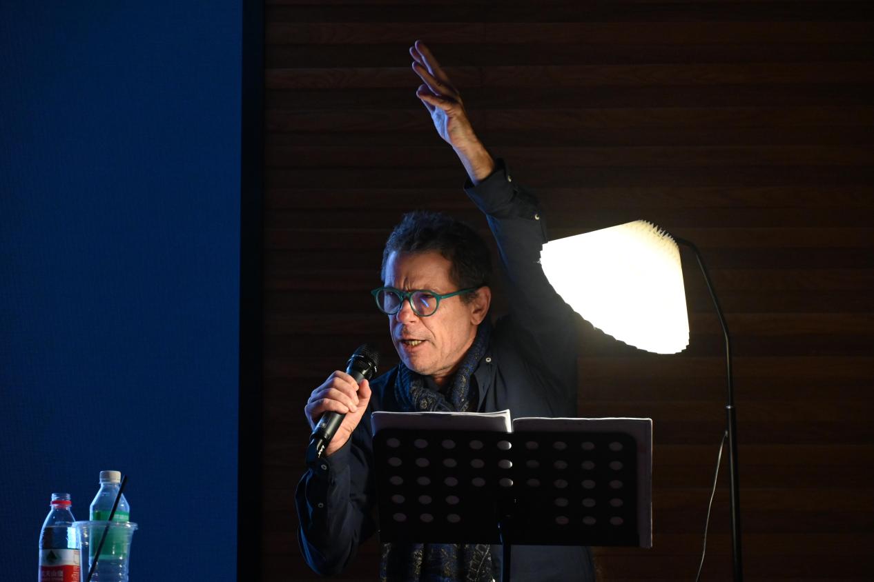 随后,灯火渐隐,舞台沉寂,表演者低沉的嗓音将观众渐渐带入了一场关于大海的现实与梦境交织之旅。《海上颂歌》(Ode Marítima)由葡萄牙诗人费尔南多·佩索阿(Fernando Pessoa)以异名阿尔瓦罗·德·坎坡斯(Álvaro de Campos)所作,作者以汹涌的文字和澎湃的情感,写下了一首对大海的激情礼赞。诗中,那如潮水般的语言仿佛带着咸涩的海风扑面而来,将大海的壮阔与冷峻、它的神秘与狂暴一同描绘出来。坎波斯的笔触灵动而奔放,带着未来主义的先锋与激情,以九百行诗句谱写了一部海洋的交响。