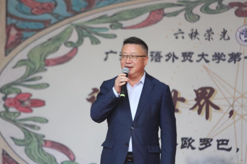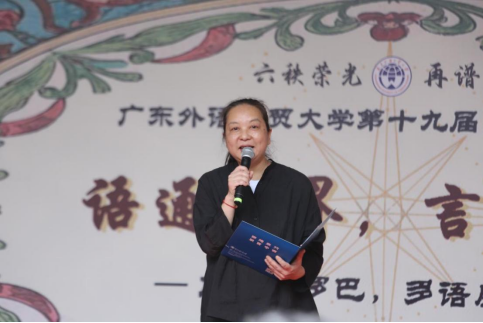 院长杨晓敏教授发表热情洋溢的致辞,回顾欧罗巴文化节历史,介绍了本届欧罗巴活动安排。杨晓敏表示,作为最受学生欢迎的文化品牌活动之一,欧罗巴文化节不仅是欧洲多元文化交流平台,更是推动学生实践创新与艺术交流的载体,也充分展示了广外专业教学和文化育人的人才培养特色,展现了新时代外语学子的精神面貌和责任担当。在致辞的最后,杨晓敏用一首优美的法语歌曲,充分表达对与会嘉宾、师生的热烈欢迎。