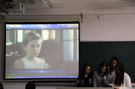 两组选手为大家带来的都是电影《波兰人在伦敦》片段的配音,她们精彩的表现赢得了台下的热烈掌声。外教Agnieszka还对选手的表现进行了精彩的点评。最终,由卓晓明、陈嘉燕、李婉荥、林冰娜组成的Siostry队以优异的成绩进入了决赛。