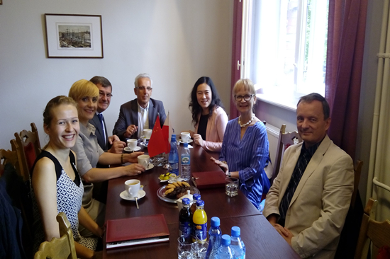 茅银辉系主任与波兰语外教雅辛斯卡受什彻青大学校长之邀, 赴该大学访问。其间就该校接受我校留学生事宜进行了实质性会谈, 并对科研合作及教师互换等合作等问题交换了意见。