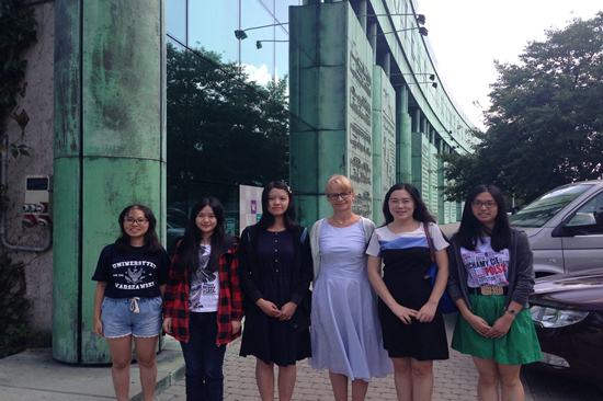 我校在华大参加暑期班的学子与老师们在华沙大学图书馆前合影