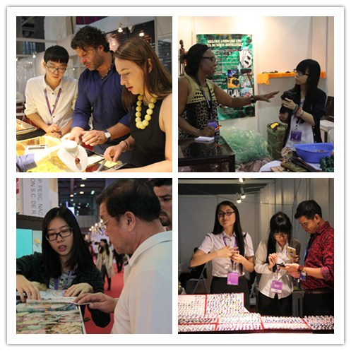 此次展会形式多样,各个展区风格迥异、特色鲜明,跨食品、服装、生活用品、服务及医药等领域。担任此次翻译的同学不仅要克服行业名词等难题,还要协助展商推销产品。虽然休息时间有限,但大家都努力调整,积极热情的协助外商完成展出,现场气氛热烈和谐。