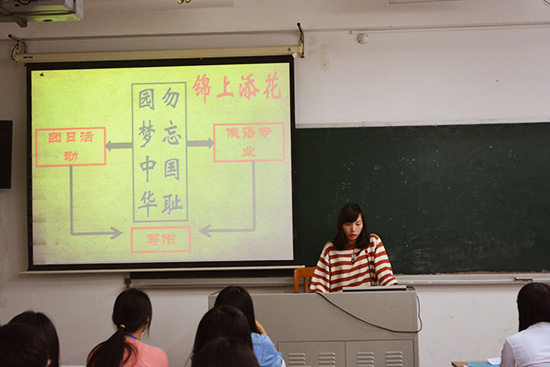 同学们还充分利用多媒体技术,创办了许多创新活动,如红色电影配音、微信点名、撰写微博墙、街头采访演播以及手绘海报班旗等等。而作为参加本次团日活动的“最老班级”的俄语1201班团支书还根据自己的专业学习经验鼓励同学们:好好学习自己的专业,未来才能运用自己的专业为国家的发展作出贡献。