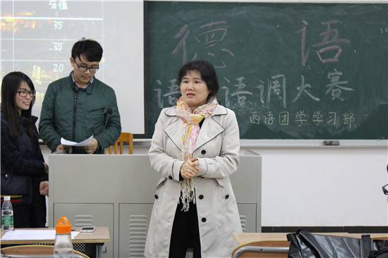 随着最后一名同学走下讲台,三位评委老师分别针对本次比赛同学们的表现做出了点评。先是肯定了大家对于德语的热情,以及所付出的努力;接着对不同的选材分别进行了评价,例如故事性的文章更有利于表达情感,但同时也更难明白文章的本意等等;最后评委表达了对同学们更多的期待并传授了一些学习的方法。