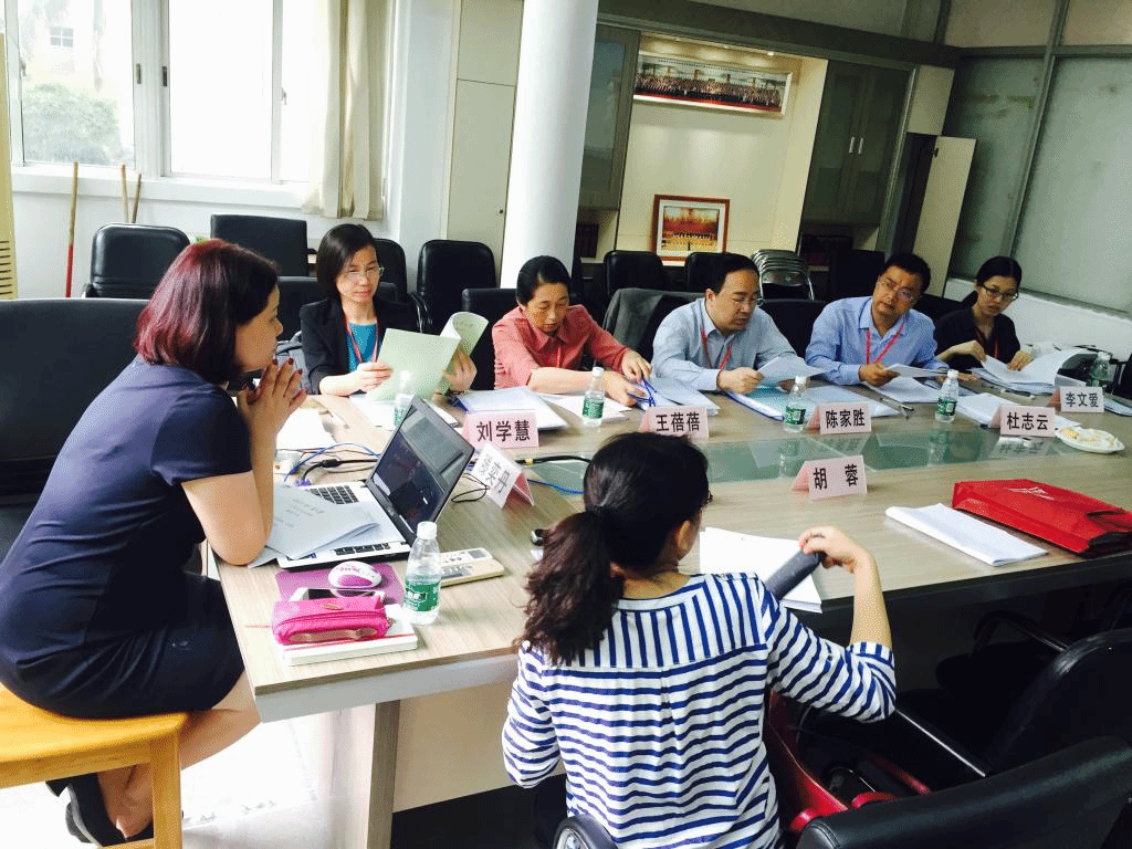 评估工作上午九点在四教会议室正式开始。专家们首先听取了德语系主任滕奕丹老师的汇报。滕老师从专业建设、师资队伍、培养目标、教学改革、学生实习实践及国际交流等方面全面地介绍了德语专业的发展情况。此外,滕老师还对德语专业现存的问题做出了深刻剖析,请专家们提出宝贵意见。