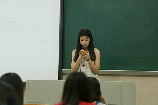 组织部部长苏惠义首先对本学年的团支书工作进行了简单介绍,本学期团日活动的主题为“凝聚青春·共享阳光”。她呼吁各班积极参与,在团日活动中展示各自的班级风采。