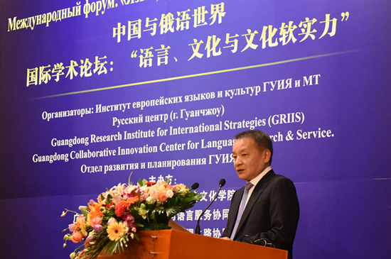 孙玉华主任在致辞中表示:“各位专家学者齐聚一堂,共同探讨俄语学术界关心的热点问题,一定将为中俄学者的交流与对话增添新的内容与活力!” 孙玉华主任将本次论坛定义为 “俄语界具有标志性意义的学术活动”,并坚信,“此次论坛将会极大提升广外在中国俄语学术界的威望,同时也将促进中俄友好和人文领域的交流与合作。”
