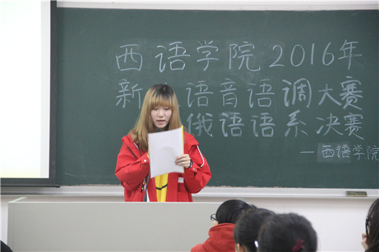 11月24日,俄语系新生语音语调大赛在北六教B306举行。出席本次大赛的评委有俄语系的郭利老师和俄语系外教Джалиль老师。经过初赛的激烈角逐,共25名选手进入决赛。