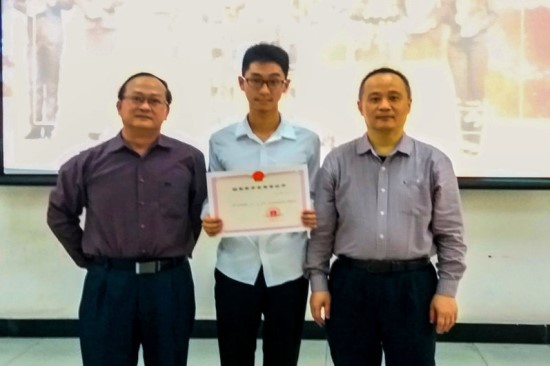 法语专业2015级学生,2016年国家奖学金获得者,曾代表学校参加2016年外研社杯全国英语演讲比赛,获得广东省冠军,全国赛二等奖,代表学校参加2016年亚太青年模拟APEC大赛全国总决赛,获得全国11强。他还曾作为英语、法语志愿者,参加二十国集团就业部长会议,亚欧媒体交流会,对非投资论坛贝宁共和国总统代表团,2017年国际泳联世界跳水系列赛接待和志愿活动。
