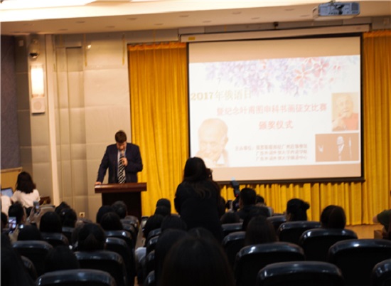 本网讯 2017年6月15日下午三点,第七届“俄语日”暨纪念叶甫图申科征文书画比赛颁奖仪式于我校七教水上报告厅成功举办。出席本次“俄语日”的嘉宾有俄罗斯驻广州总领事馆文化随员格里高利·科雷什金,广外欧美a片