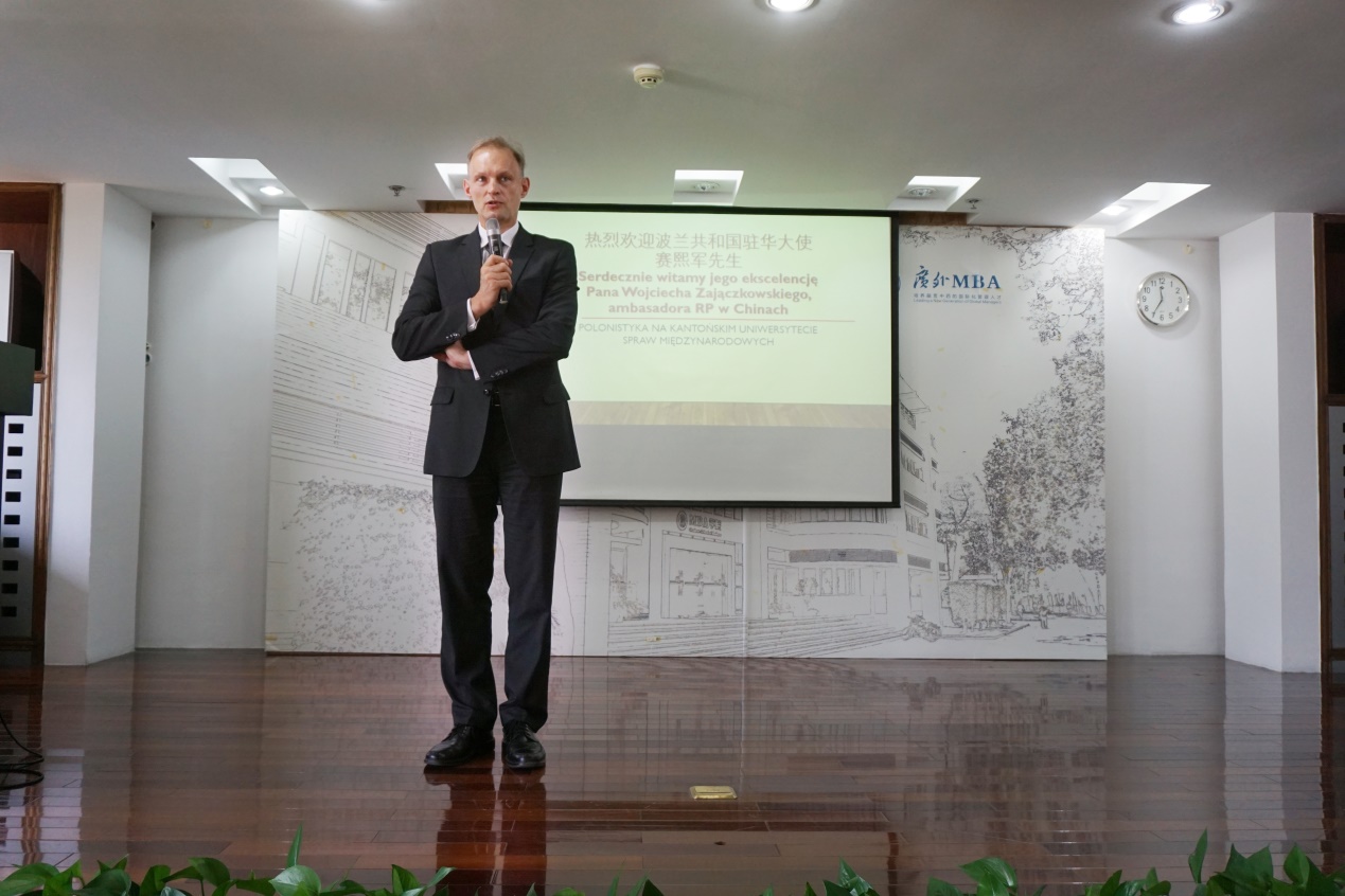 本网讯 5月23日,波兰共和国驻华大使赛熙军(Wojciech Zajączkowski)在波兰驻穗总领事岳安娜·斯考柴克(Joanna Skoczek)的陪同下率团来访,我校党委书记、校长隋广军于行政楼贵宾厅会见来宾,双方就未来的交流与合作进行了洽谈。