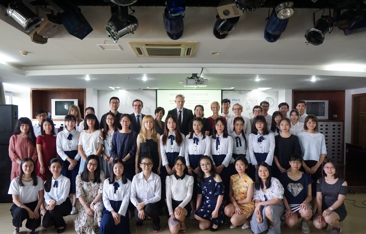 在波兰语系系主任茅银辉教授和外教阿格涅什卡·雅辛斯卡(Agnieszka Jasińska)教授的欢迎致辞之后,赛熙军大使发表讲话,他表示波兰语是一门很难学的语言,对我校波兰语系学生们在短短几年的时间内所达到的波兰语水平给予了高度评价。学生们为大使一行呈上了一场精彩的波兰民族歌舞表演,并与波兰客人们就未来的就业、在波兰的留学生活体验、学习波兰语中遇到的困难等进行了热烈的交流。最后,赛熙军大使为在去年第一届波兰语翻译大赛上获奖的三名同学颁奖。