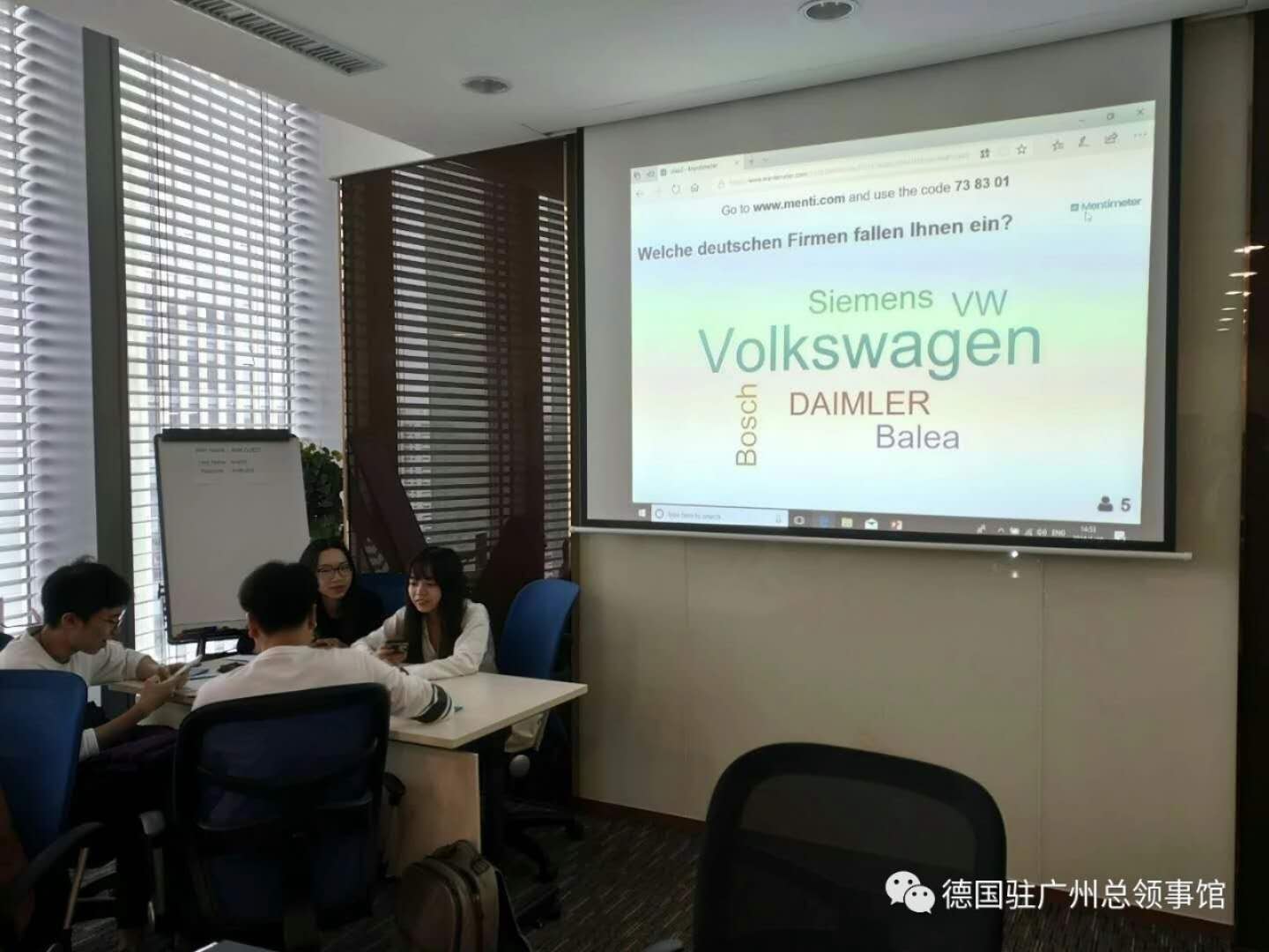 研习会的第一部分由德国商会执行总监Marc Piesbergen和客户经理KatjaSchlaug共同组织。经过两位的介绍,学生对中德经济往来、中德商务礼仪差异以及德国商会广泛的业务领域(包括咨询服务、文娱活动)有了初步了解。学生们觉得这个“秘籍”特别有用:那就是多些关注德国的中小企业,并在这些企业中寻找雇主,而不是仅仅盯着那些世界知名的大公司。