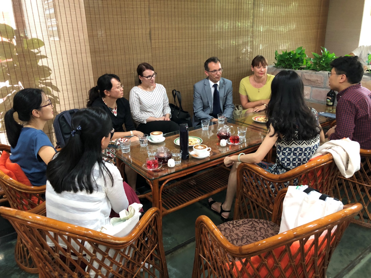 德语系创新团队全体成员及外教与前来我校进行学术访问的波兰什切青大学日耳曼学院教授举行学术交流座谈会。