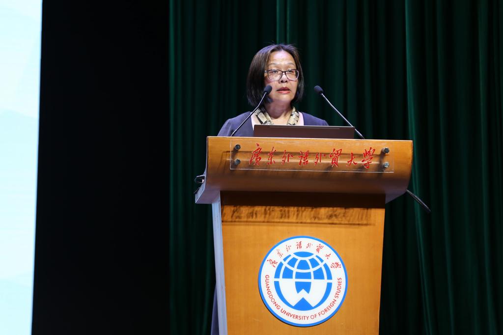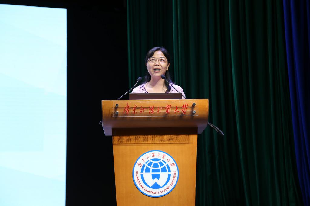 院长杨可老师致发言词。杨可院长对2019级新生表示了热烈欢迎,祝贺他们迈入大学门槛,开启了人生崭新的一页,成为了广外西语人。同时院长也鼓励新生努力学好语言,培养双向互动跨文化交际能力,成为优秀的西语人。