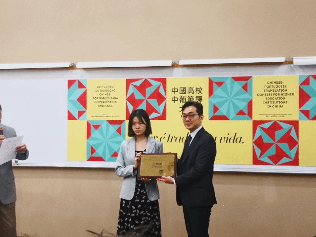 本网讯 10月28日,由澳门大学和北京外国语大学联合主办、澳门高等教育基金会赞助的“首届中国高校中葡笔译大赛”决赛在澳门大学举行。我校葡萄牙语专业吴澜同学凭借出色的双语功底和精湛的翻译技能荣获葡译中组别三等奖。